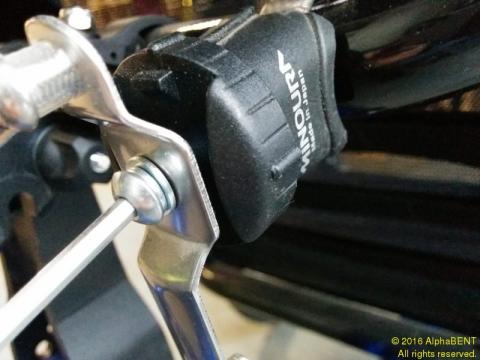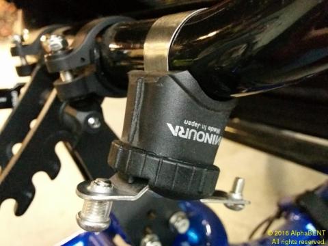 The BH-95X can make a strong mounting point not just for water bottle cages on the back of the rigid seat frame of an ICE recumbent trike, but also for suspending a Bionx electric motor battery.